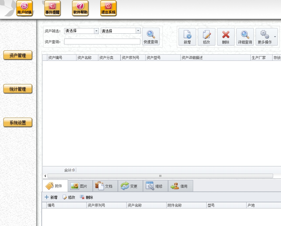 第四:固定资产软件系统设置,包括有:备份恢复数据库、操作员设置、其它设置,完善的数据自动备份、用户权限、日志记录功能。
