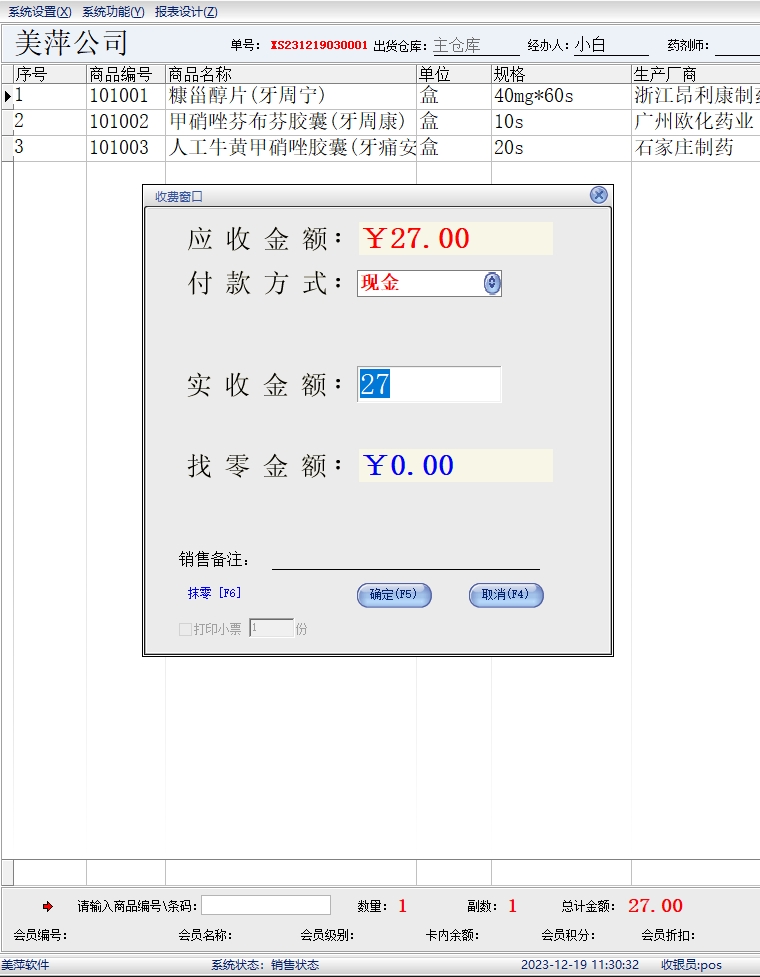 美萍医药管理系统(软件)的主要功能: