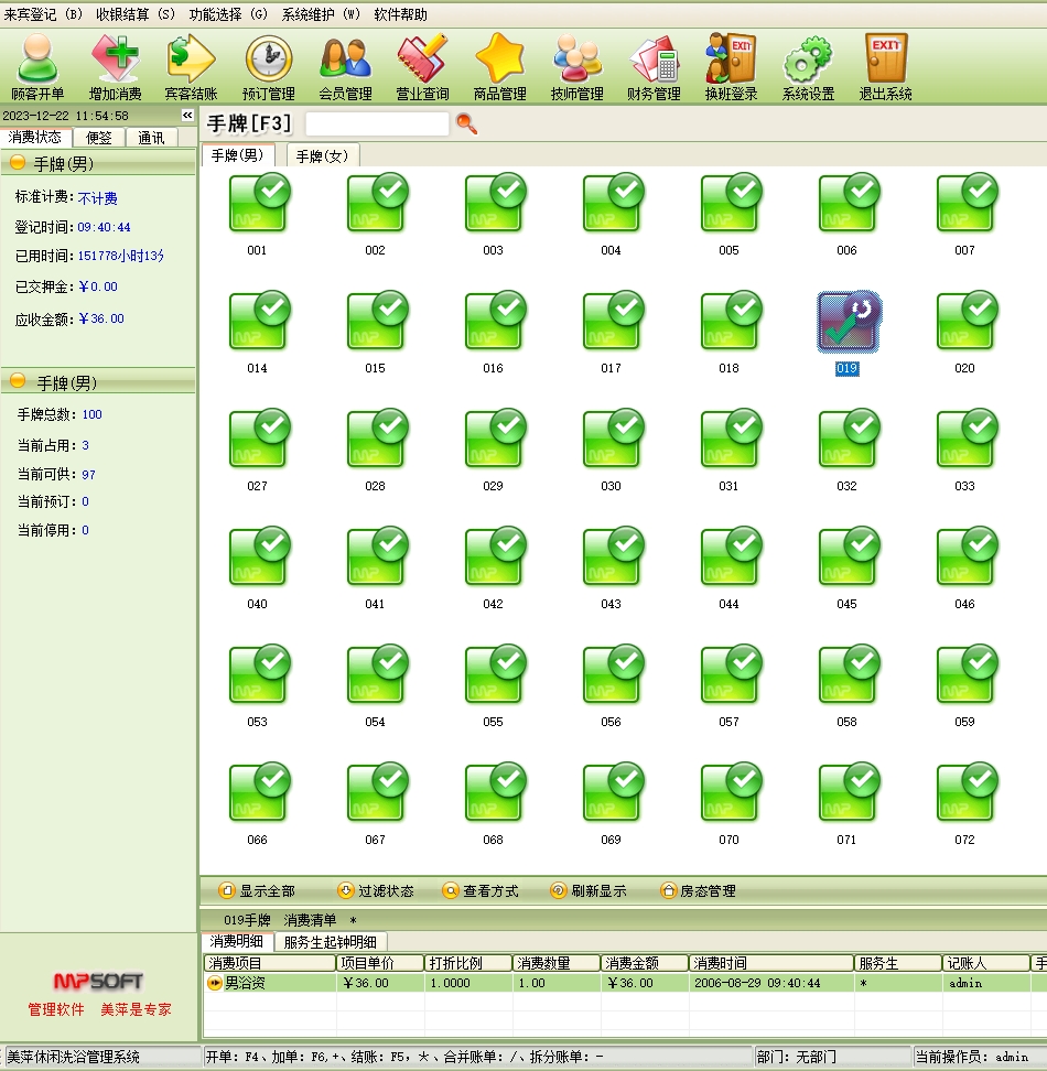 美萍洗浴休闲管理系统(适合以手牌管理为核心的洗浴酒店餐饮一体的休闲娱乐中心)点击下载安装体验试用!