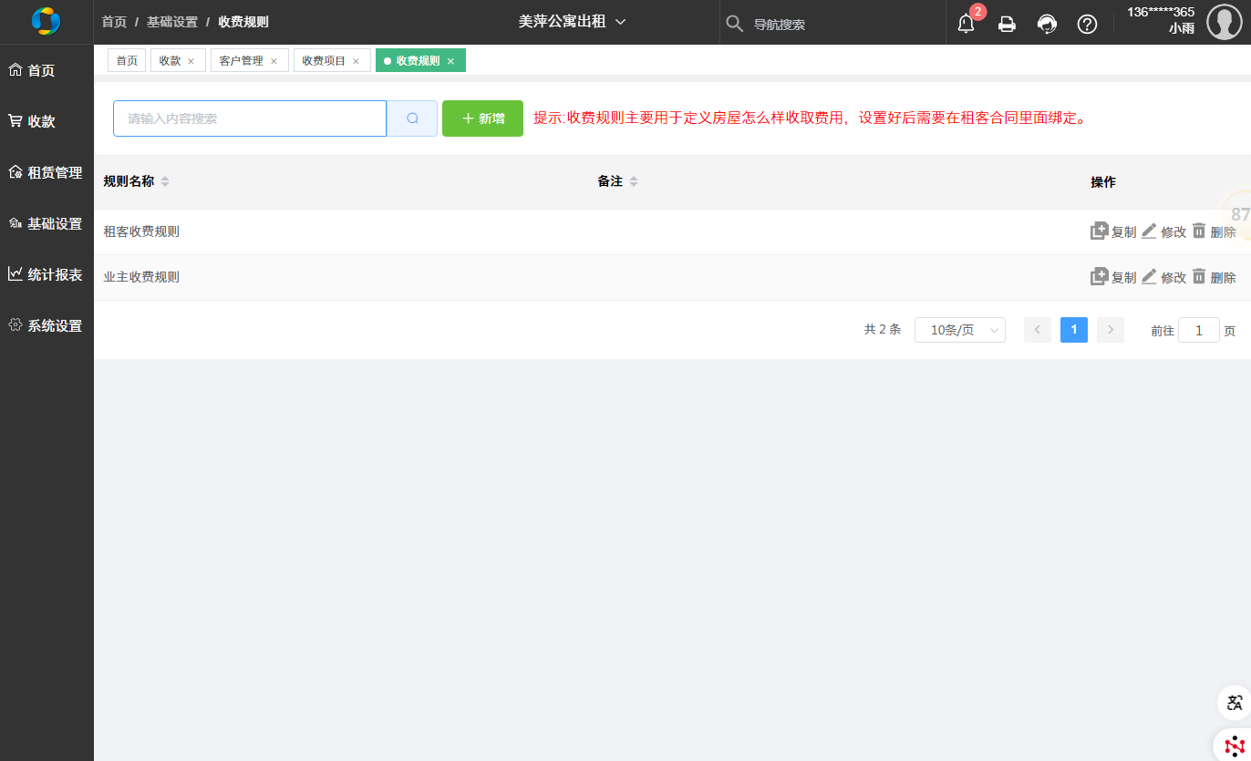 收费项目与收费规则设置: 支持自定义收费项目与规则,灵活应对不同租赁场景的收费需求。