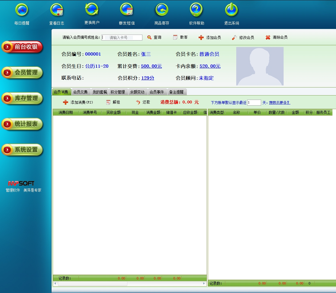 美萍美甲管理系统(软件)的主要功能: