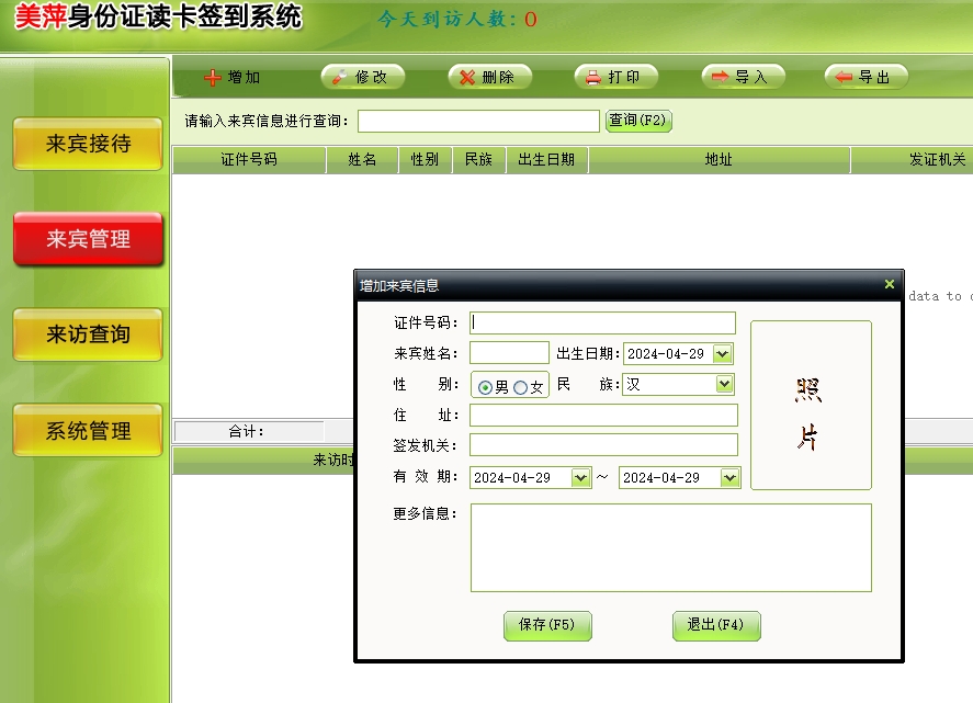 美萍身份证读卡签到管理系统(软件)的主要功能: