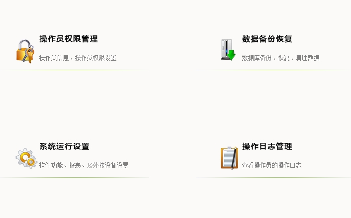 第二:系统管理:可以管理操作员的信息及权限功能,能够对数据库进行维护,设置系统运行参数信息、身份证读卡器的品牌型号以及读卡时所用到的快捷键等,本软件支持国内所有正规厂家生产的二代身份证读卡器具进行读卡操作,也可以进行来宾信息管理及来宾事件记录的查询、统计、导出、打印,查看日志等操作。