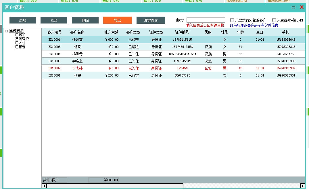 第二:市场商铺租赁软件管理客户资料信息,支持客户分类和客户账务明细查询。