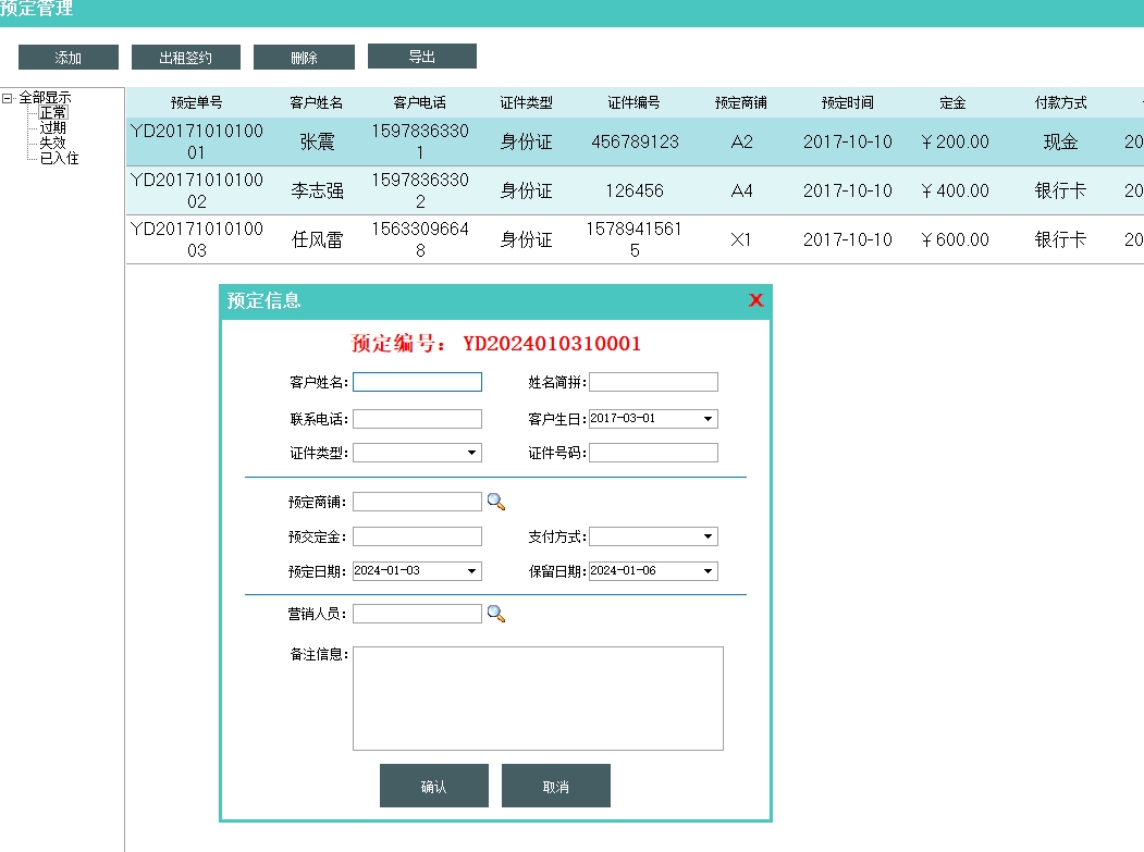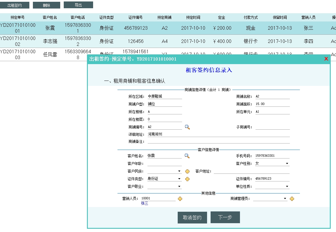 第三:市场商铺租赁软件具有综合管理预定信息,支持分项修改预定信息和预定状态管理。