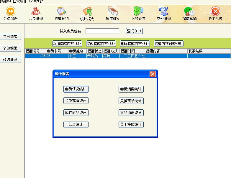 第二:美容院(门店版)软件支持储值卡、折扣卡、计次卡,会员提醒(包括生日提醒),会员来电提示,短信群发。