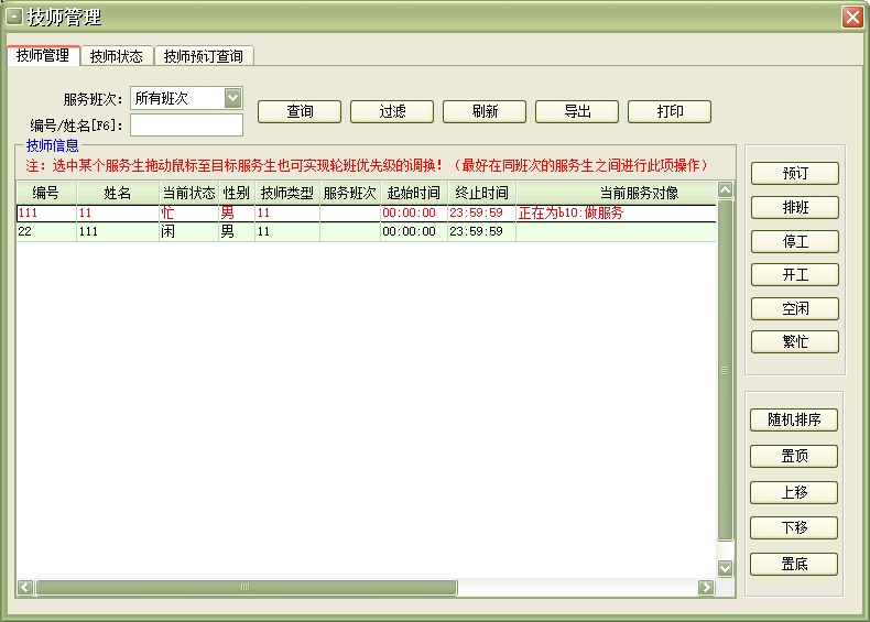服务生设置:服务生是指能为宾客提供服务的本店员工,在此设置中可增加、修改、删除服务生信息,还可为每个服务生设置相应的服务生等级(例如:高级技师、中级技师、普通技师等)。有了服务生等级可在商品项目中为每种服务项目所对应的服务生等级设置相应的提成金额(如果有此需求),此项设置可为宾客提供服务的服务生自动计算提成金额。